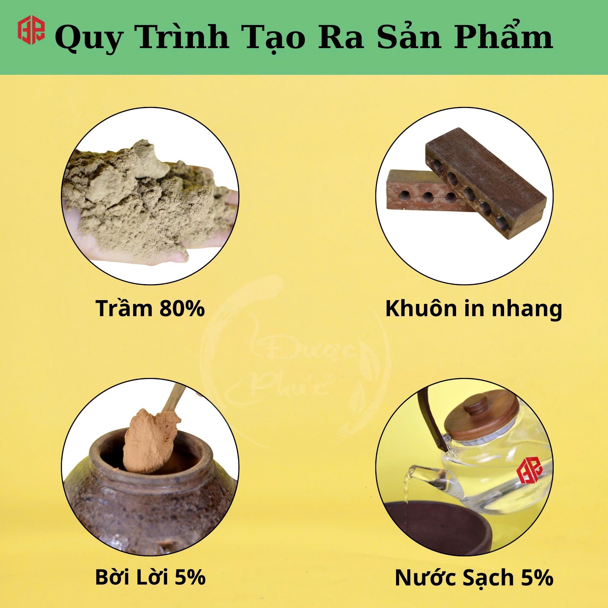 • Chất liệu: Trầm hương tự nhiên 12 năm tuổi + keo sinh học + nước mưa chưng cất